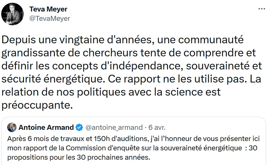 Elle alimente aujourd’hui les discours sur une supposée « indépendance énergétique ». L’un des mérites de l’ouvrage de Teva Meyer est de rappeler combien cette notion, brandie comme une évidence, manque de fondement scientifique. L’idée même d’indépendance, sans parler de sa mesure, ne tient pas face à « la complexité que la globalisation a introduite dans les systèmes énergétiques ».