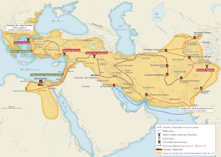 Pendant la période hellénistique, le monde grec est à son maximum géographique: Égypte, Syrie, Mésopotamie, plateau iranien, de l’Asie centrale jusqu’aux portes de l’Inde sous Alexandre le Grand qui se faisait appeler « roi de Macédoine et d’Asie ». Avec l’éclatement de l’empire, la «royauté militaire» devient territoriale mais les royaumes hellénistiques, fragmentés, ne cessent d’être contestés en Égypte, en Syrie (six guerres de 274 à 168 AC entre Lagides et Séleucides racontées par Polybe, historien universel).