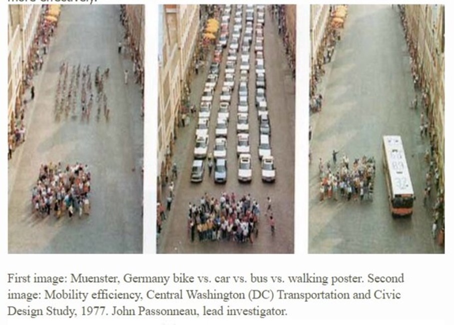 Les bénéfices perdus de la marche (on ne parle plus des 10 000 pas) sautent aux yeux lorsqu’on imagine la taille des espaces confisqués dans les villes aux territoires des marcheurs (on ne parle plus des marcheurs mais des espaces). Puisqu’on est en géographie, un designer a eu l’idée de représenter ce que la bagnole a pris aux piétons. Édifiant… Reste que la reconquête du bitume passera par la loi (Mme Hidalgo se fâche contre les SUV, le ministère de l’Environnement contre les voitures polluantes à coup de vignettes Critair). Et pourquoi pas par ces foutus 10 000 pas qui rappellent aux humains qu’avec la possibilité d’un collapsus qui dépeuplerait l’Île-de-France à l’horizon 2050, l’entraînement qu’ils ont initié ne sera pas de trop:
