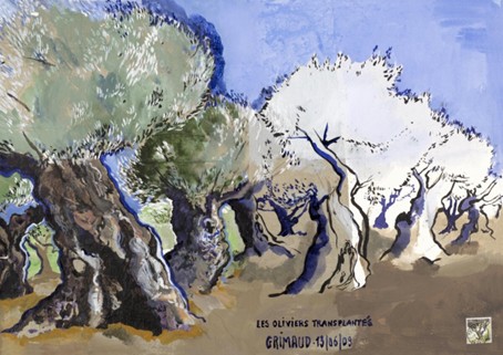 Ces «frères d’arbres» conçoivent un objet qui sent la foudre. Plein de beauté et d’érudition. Une ode vibrante de ce qu’un regard patient peut poser sur une forêt meurtrie deux fois par le feu. Les aquarelles de Simon, livrées en grands formats, saisissent la respiration même du végétal: on y voit battre les veines des troncs, frissonner les feuilles, éclore les fleurs jusqu’au tremblement de leurs pistils. Avec la mémoire des dessins des encyclopédistes du XVIIIᵉ siècle, Simon travaille les mille et moindres formes des ramures, les élans du châtaignier «buteur de feu» millénaire des Mayons, la peau rugueuse des chênes-lièges de Collobrières, l’argenté des oliviers de Port-Grimaud, ou les silhouettes des micocouliers du Vieux-Canet. Avec lui, la forêt se fait royaume: délimitée par des cairns, bornée de chapelles, ouverte sur des panoramas où le soleil incendie l’horizon après avoir dissipé les brumes froides et bleutées de l’aube. Avec en écho, les poésies de Patrick, inspiré comme un mystique du Moyen Age, qui donne un corps sonore aux couleurs de Simon, lequel note «Patrick raffolant du micaschiste, c’est sa bijouterie».